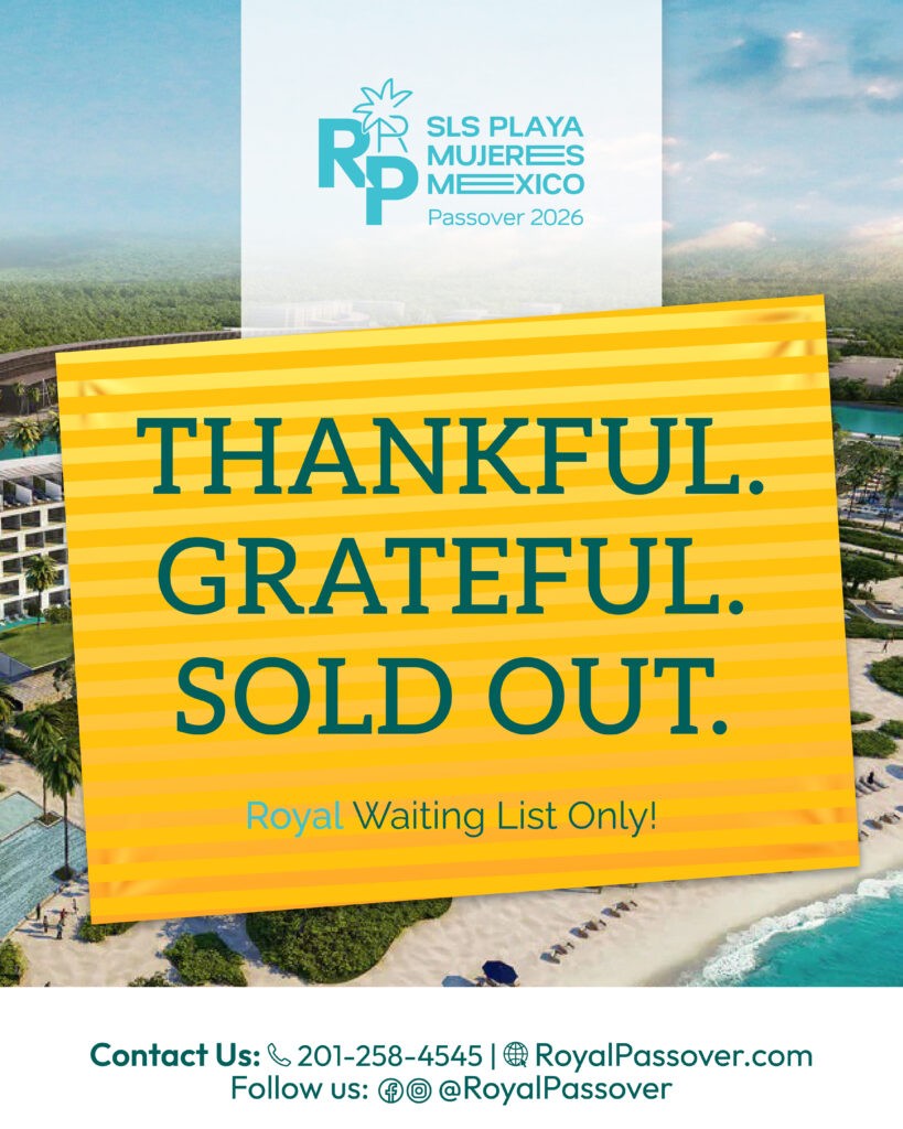 We at Royal Passover have put together an unparalleled Passover program. One in which we will exceed your expectations with unrivaled personal service, the finest culinary delights, entertainment that will marvel you, and speakers that will electrify you. All this and more, at one of the most glamorous and elegant resorts in all of Playa Mujeres.