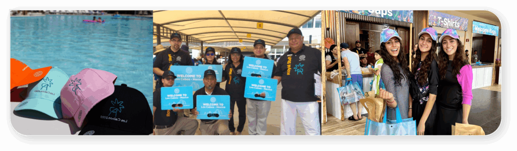 RP swag bag with t-shirts, caps, sunscreens and much more